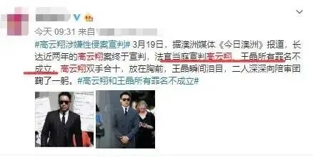 3月19日,差10天满两年的高云翔王晶性侵案终于尘埃落定,两人所有罪名不成立,愿意的话可以立刻回国。