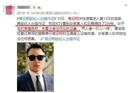 这样的情况也让案件有了大反转的机会,而2019年11月13日,高云翔经纪人出庭作证,表示在KTV看到张某与王晶拥吻的情景,当时女方的表情自然,看不出任何反抗的迹象。