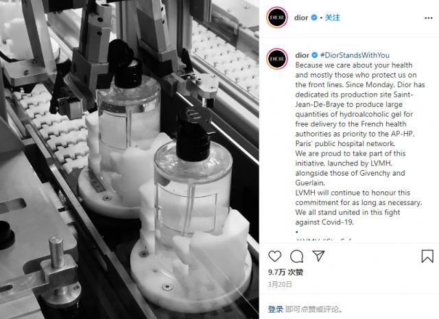 各大奢侈品企業紛紛加入了抗疫的行列,