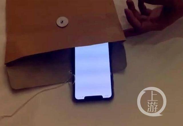 当晚10时,上游新闻记者在酒店收到了原阳县委宣传部卞副部长送来的被抢手机,但是手机被刷机,手机是装在这个牛皮袋里送来的,一开机里面什么都没有,不知道是被谁刷了机,手机里面什么都没有了。