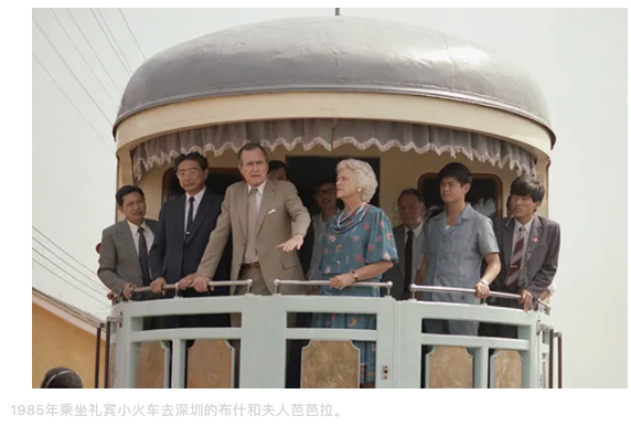 这一年,布什的访华非常愉快,他游历了漓江山水;他乘坐礼宾小火车,从广州到深圳;他们在深圳参观了百事可乐厂。