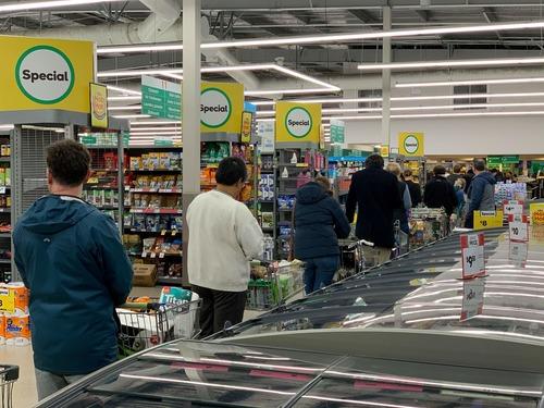 8月11日,在新西兰惠灵顿一家超市,购物者排队结账。(新华社/法新)
