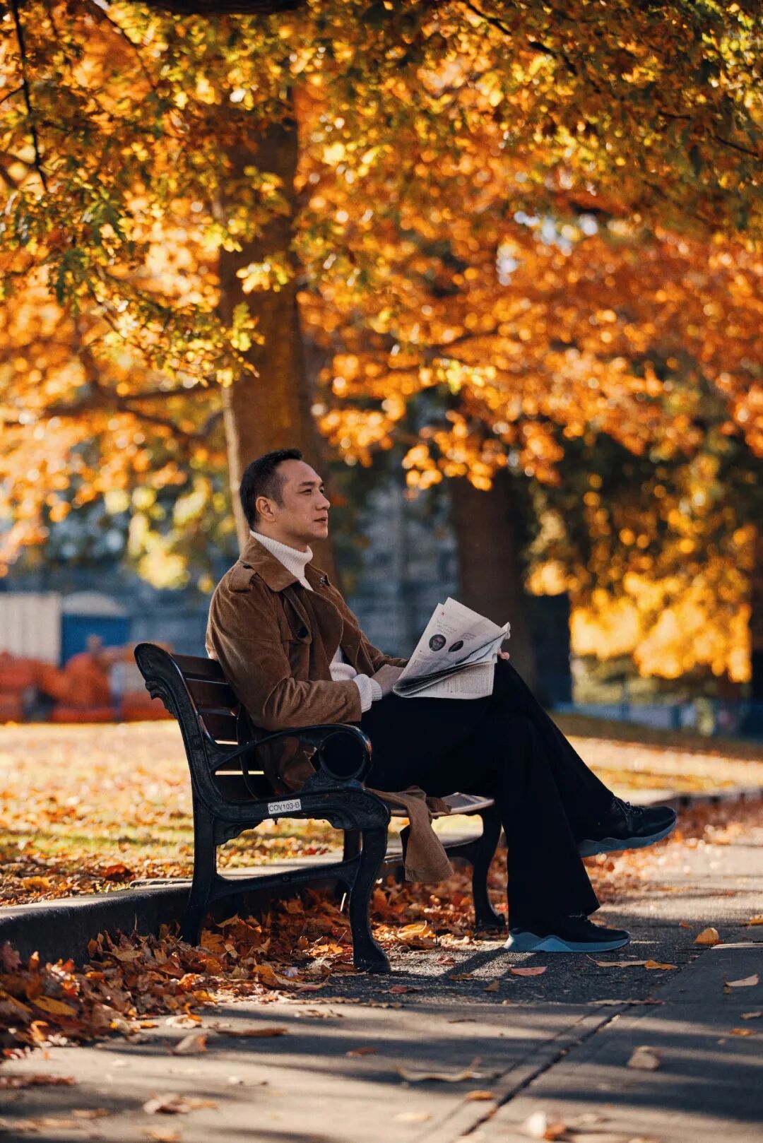 △2019年深秋,演员黄觉来到维多利亚,在满是枫叶的街道上拍下了这张照片。Photo:张博然/时尚旅游