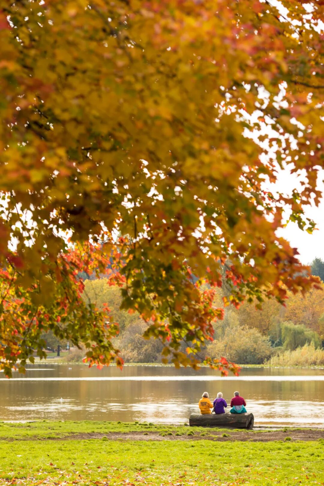 范度森植物园Van Dusen Botanical Garden 温哥华最富盛名的赏秋之地之一。每年的深秋,这里就是摄影爱好者最爱的打卡地。植物园种有很多银杏树,金黄的银杏叶与火红的枫叶相互辉映,格外璀璨,是摄影爱好者收集秋日素材的必去之地。 鳟鱼湖Trout Lake, John Hendry Park 鳟鱼湖并不大,环湖步道走一圈也不过十来分钟的路程,但“枫”景却分毫不减。网友形容:“沙滩后就是一整片高耸的枫树,比肩而立。枫叶当红时,从湖的对岸远眺,仿佛整株着了火,湖水上也映着赤焰火光。”