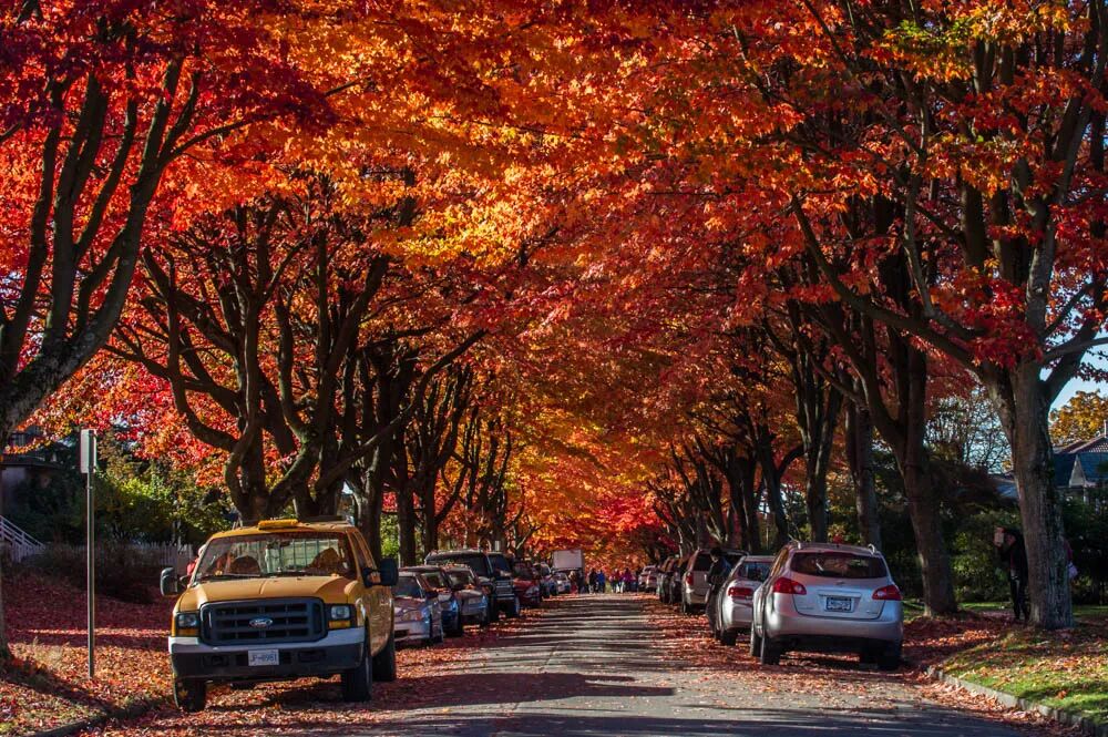 Penticton街夹Eton街到Cambridge街路段。这里同样也是赏枫的热门街区,并且横贯Cambridge街和Eton街。甚至有网友说,这是迄今为止在温哥华看过的最震撼的枫叶美景。在这里散步,会被层层叠叠的枫叶包围,让人觉得热情洋溢,心情大好。 Gastown