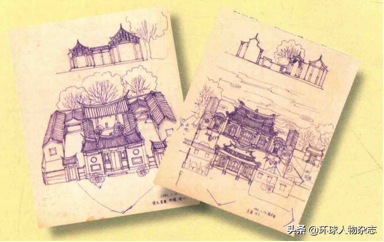 ·田野调查后,张信哲为西螺廖氏宗祠和斗六吴秀才家宅所画的手稿。