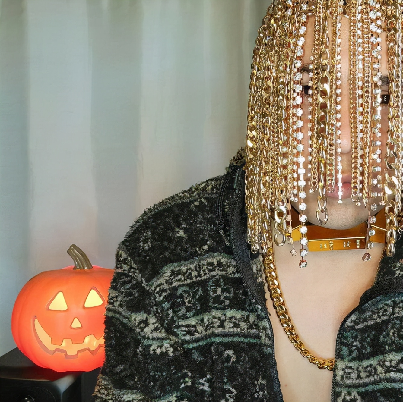 现在,数十条大金链子从头顶垂下来,遮住Sur的大半张脸,