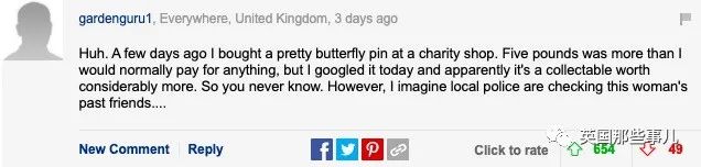 “哈,幾天前我從慈善贰手店裡買到壹個超美的蝴蝶胸針,花了5英鎊,通常我都不會買這麼貴的東西。