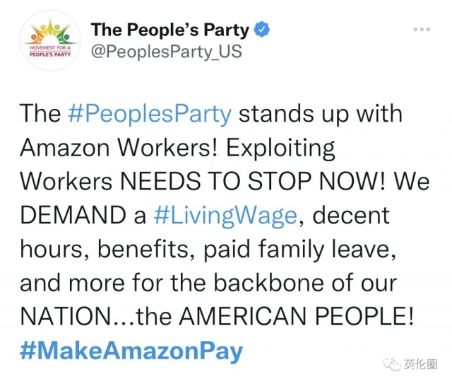 ¡¡¡¡´Ë»°Ò»³ö£¬Á¢¼´¼¤ÅÁËËùÓÐΪÑÇÂíÑ·ÐÁÇÚ¹¤×÷µÄ¹¤ÈËÒÔ¼°Î§¹ÛȺÖÚ£»ÊÀ½çÉÏÐí¶à¹¤ÈËÁªºÏÆðÀ´ÔÚÍÆÌØÉÏ·¢ÆðÁË#MakeAmazonPay Ô˶¯¡£À¹úÈËÃñµ³£r />