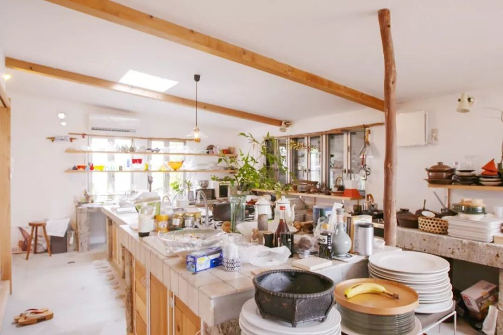 2011年,她在京都比睿山买了一块400㎡的地,整个一层以开放式厨房为主,是名副其实的厨房之家。