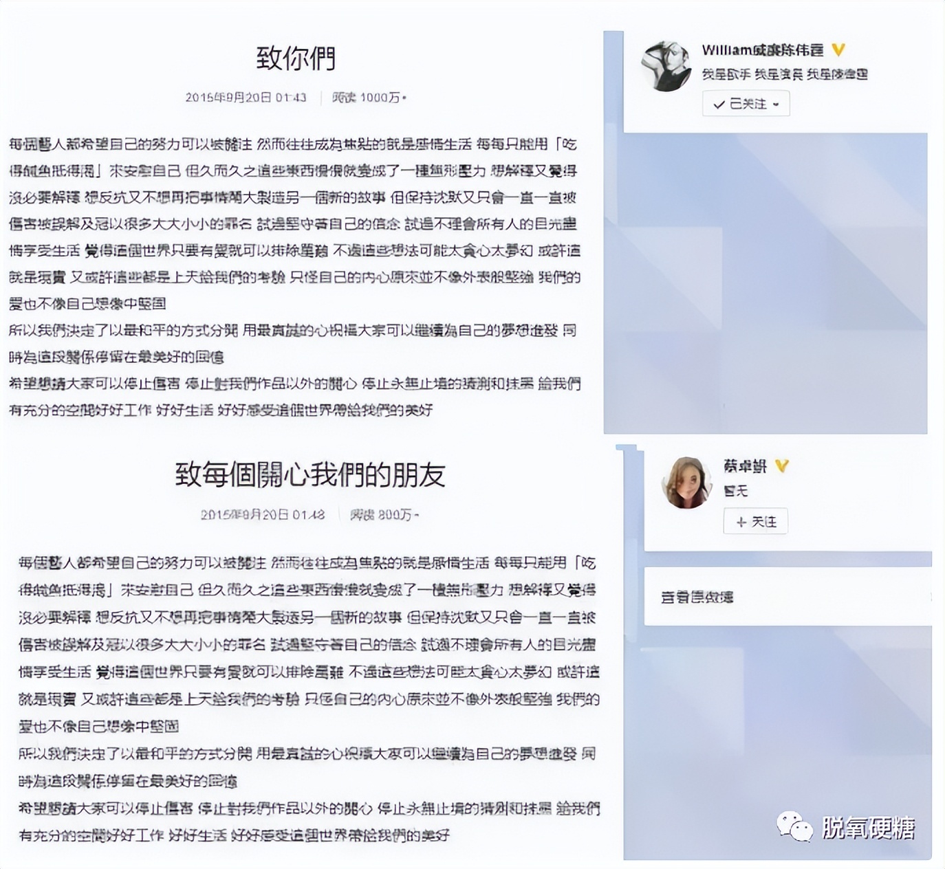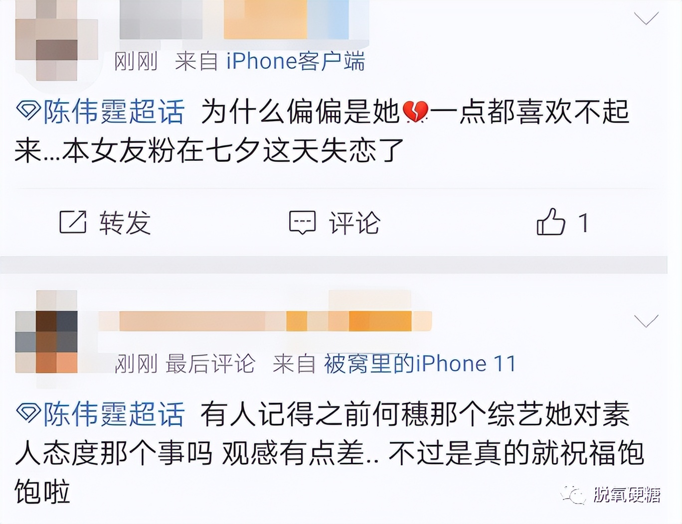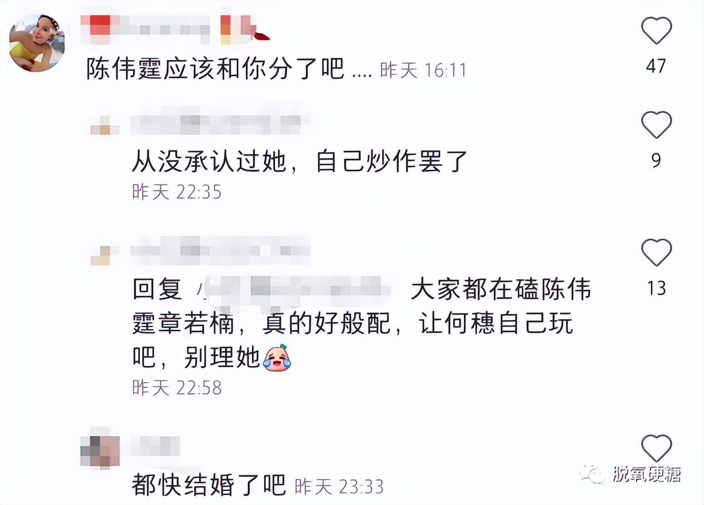還有網友爆料其實何穗和陳偉霆早在兩年前就在壹起了。