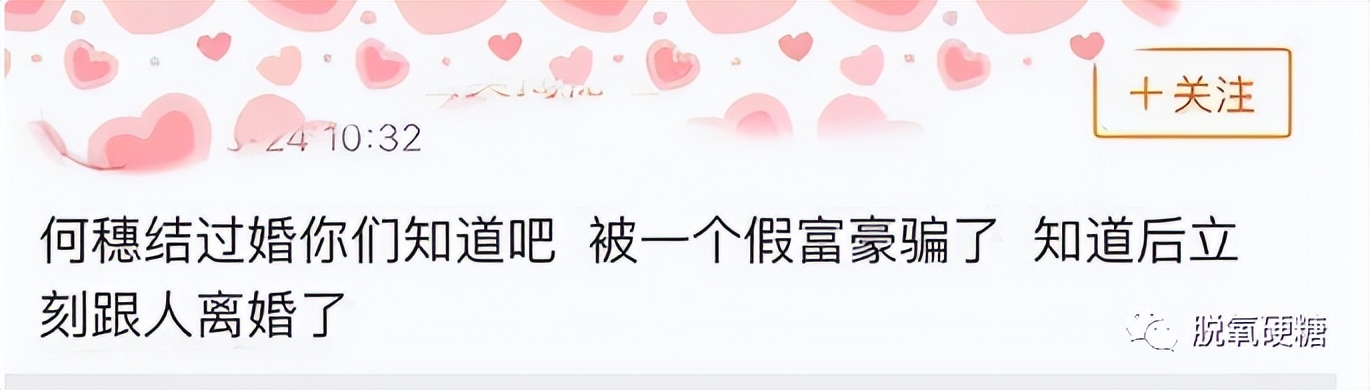 但是網友爆料稱何穗當時的老公是假富豪,何穗得知被騙後直接離婚了。