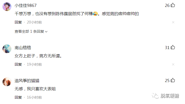 如今陳偉霆和何穗的戀情粉絲粉也大都表示是“女方上趕子,男方無所謂。”