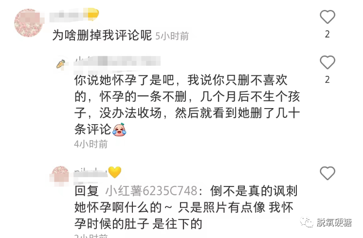 估計是評論區裡懷孕的聲音太多,何穗居然親自下場刪除那些說她懷孕的評論了。