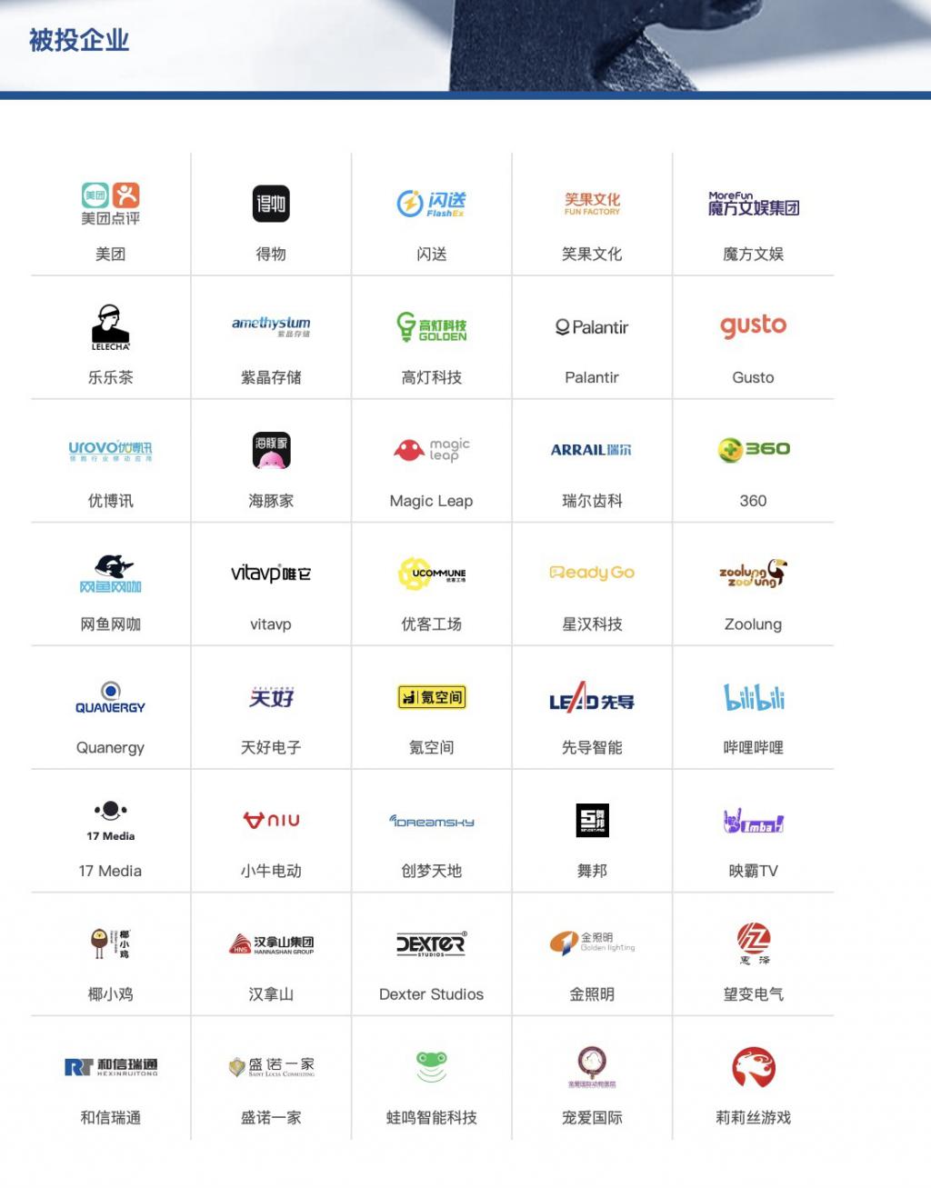 美团、得物、闪送、笑果文化、乐乐茶、奇虎 360、网鱼网咖、哔哩哔哩、创梦天地等知名公司皆接受过普思资本的投资。