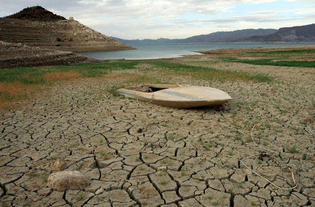 ·持續幹旱的米德湖。