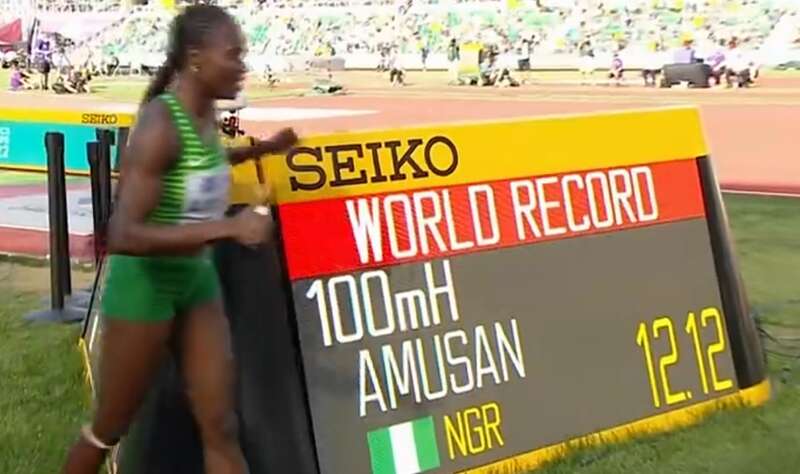 阿姆桑今年25岁,还没有拿过世界冠军,在决赛中也不一定能拿世界冠军,但她一举打破了世界纪录,这个纪录比原纪录提高了0.08秒之多,把自己的最好成绩提高了0.28秒,堪称奇迹。