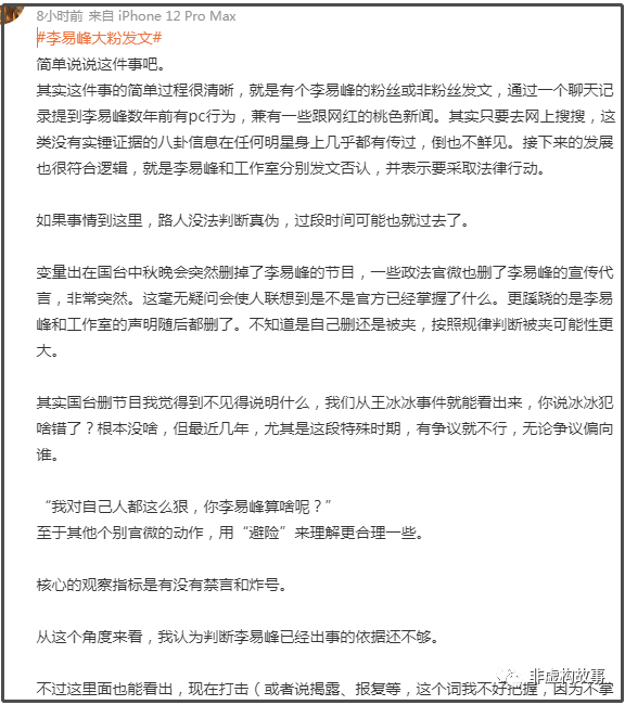 官宣之前,連微博大V理記都認為“李易峰已經出事的依據還不夠”。