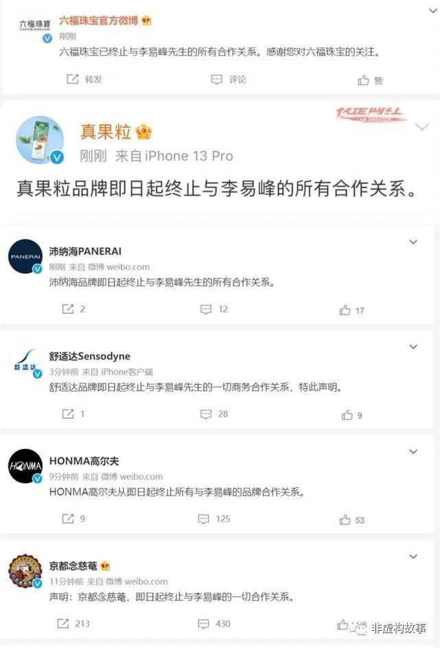 17:59 真果粒品牌宣布終止與李易峰的所有合作關系;