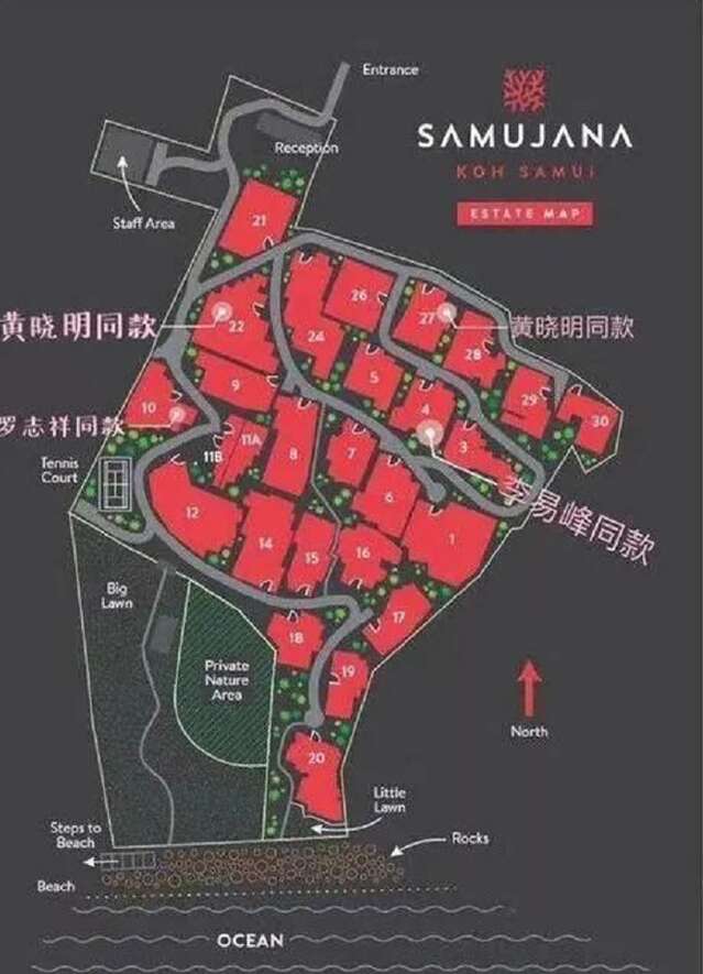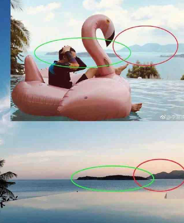 雖然兩人提供的物料極其有限,通過對比照片,不難找出其中的諸多巧合。比如兩人曬出的照片,所選取的都是同樣的角度,證明兩人入住的應該是同家酒店。再細究兩人的拍照角度,只有薩穆嘉納的20號別墅可以滿足兩人的拍攝需求。