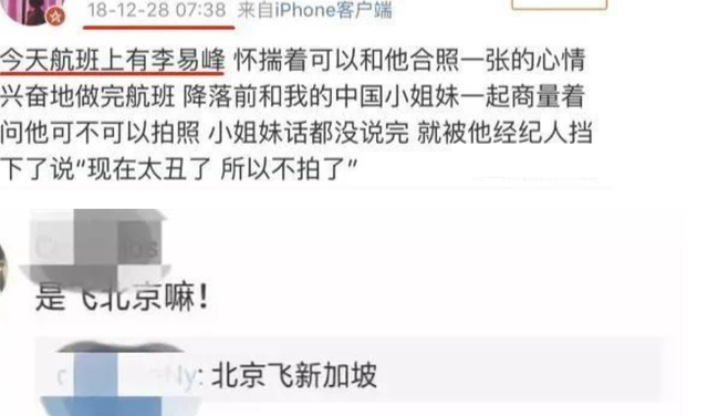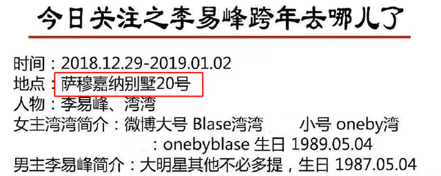 除了這些以外,還有其它佐證。網紅灣灣於28日飛往蘇梅島,李易峰也在北京飛往新加坡的航班上被偶遇,因為北京沒有直飛蘇梅島的航班,所以需要轉機,而新加坡則是常見的轉機地點之壹。看過這些物料之後,基本就可以坐實李易峰與網紅灣灣的跨年約會了。