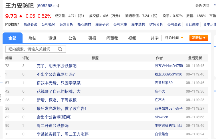 值得壹提的是,紅星資本局注意到,李易峰還是A股上市公司王力安防(605268.SH)的代言人。2021年10月,王力安防簽約李易峰為公司品牌代言。2022年9月11日,王力安防股吧交流區中,有投資者擔憂道:“完蛋了,跌停。”“周贰會不會跌停。”