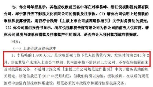 經查,造成上述關聯事項的原因在於,歡瑞文化通過利用合作拍攝電視劇《鐵血黑金》項目,從2013年3月至2017年2月累計占用歡瑞影視資金1200萬元。鍾君艷及歡瑞文化利用向旗下藝人李某某借款事項,從2015年6月至2017年3月占用歡瑞影視資金1800萬元。而多個官方信息顯示,行政處罰書中所述“李某某”即李易峰。