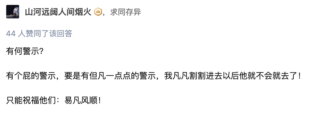 “有何警示?但凡壹點點的警示,我凡進去以後,他就不會進去了。只能祝福他們:易凡風順!”