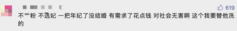 “壹把年紀了沒結婚,有需求了花點錢,對社會無害啊,這個我要替他洗的。”