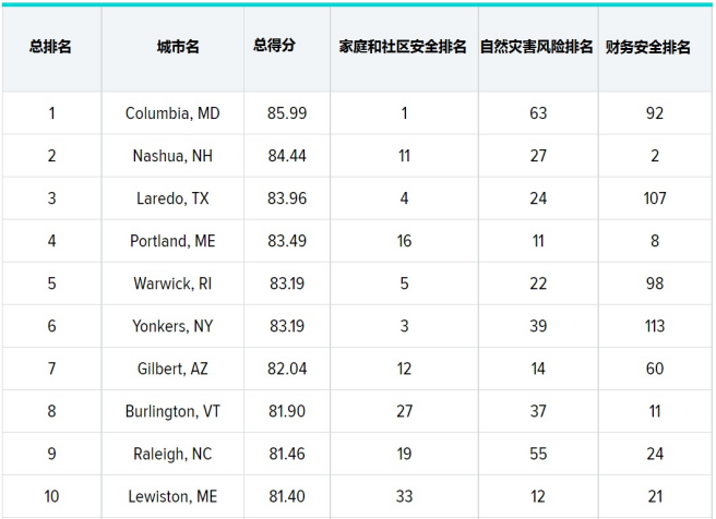 研究人员在一份声明中表示,“美国的安全威胁来自于多个方面,从新冠疫情的持续存在到自然环境灾害,再到大规模枪击案件和交通事故。一些城市真的很擅长于保护居民免受伤害。”