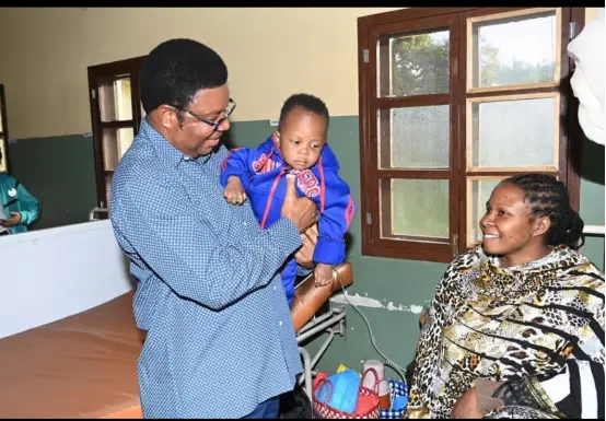 (图为坦桑尼亚总理马贾利瓦探望被张林救起的婴儿及其母亲。受访者供图。)