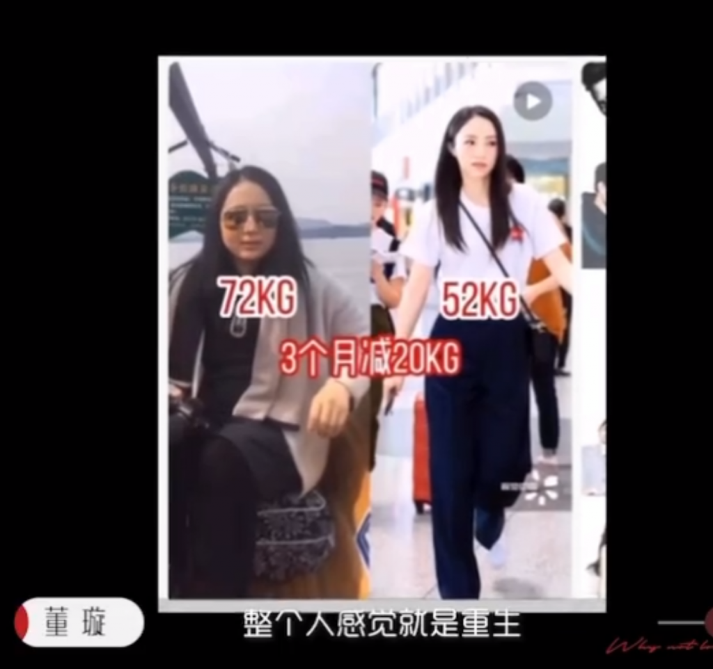 那个时候董璇很迷茫,照镜子看到自己的身材和以前完全不一样,她也曾担心过。不过,好在后来终于又有机会露面,她很想珍惜复出的机会,便下定决心减肥,短短五个月的时间就狂甩70斤肥肉,瘦回100斤左右。