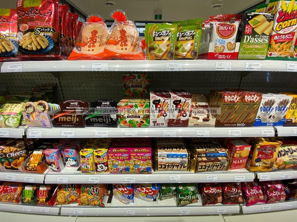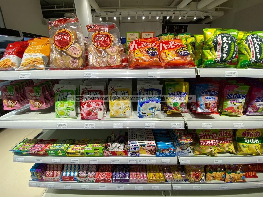 各種日本零食,膨化食品、糖果、巧克力和小餅幹等等。