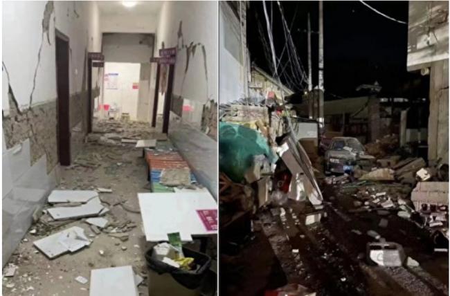 网民发出的图片显示,保山市第二人民医院瓦窑分院建筑受损,墙面掉落,铁门变形脱落。央视称,两次地震后,瓦窑镇中心卫生院等乡镇医疗机构墙体开裂、脱落,设施设备受损,人员已撤离。