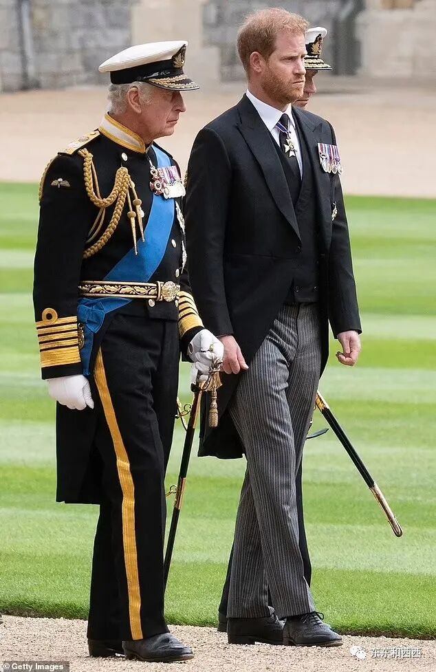 哈里出席了,但梅根和俩娃没有,这也注定加剧查尔斯与哈里的紧张关系。