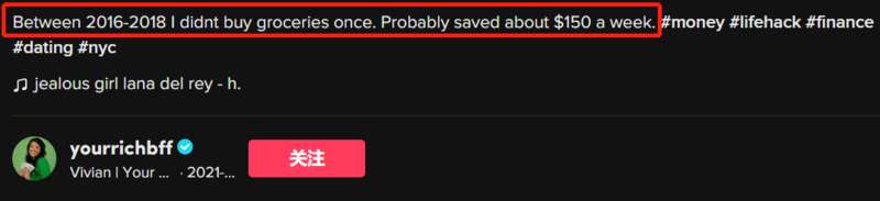 最近,TikTok上有一条视频的讨论度很高。视频全长10秒,画面里的女子拽拽地取下墨镜,用配文说明了一切:他们说女人不会理财,无所谓,姐会出手(一周约会6次蹭饭省下日常开销)