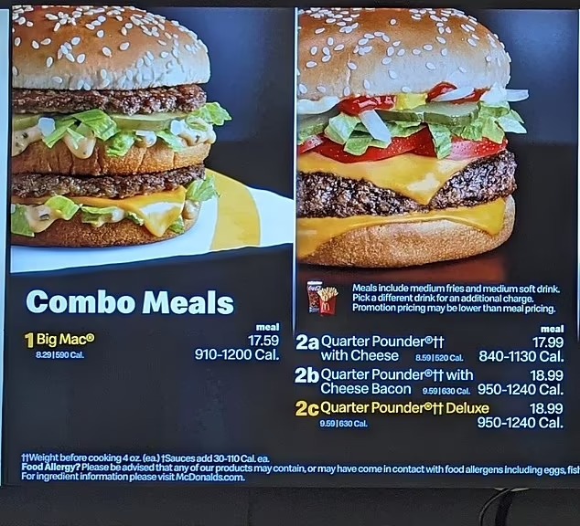 他帶在網上分享了麥當勞壹張菜單圖片,其中顯示了壹份巨無霸餐(Big Mac ),標價為 17.59 美元。根據 MC-Menu 的數據,在美國,包括薯條和壹杯飲料的壹頓飯的平均價格為 8.64 美元。