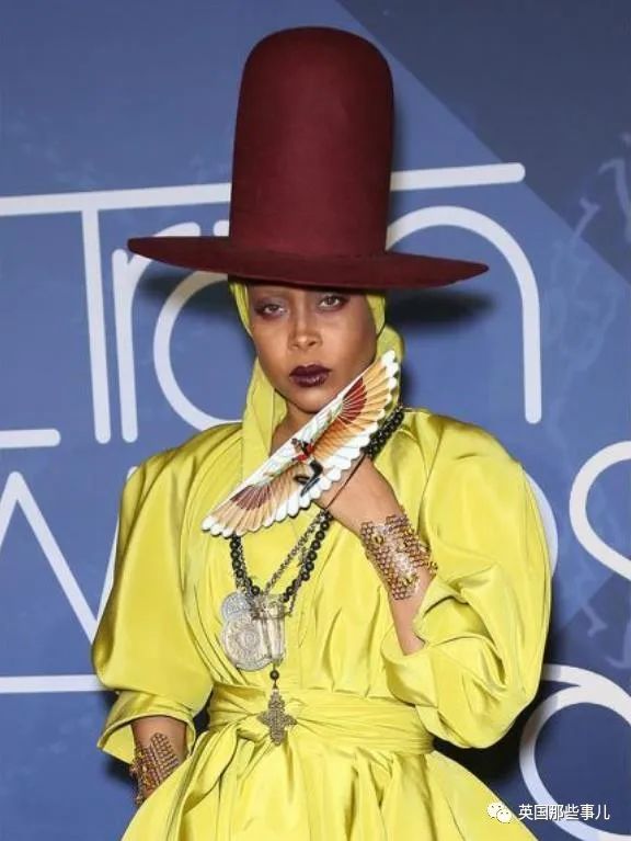 还有2016年,说唱歌手埃里卡·巴杜在一次颁奖礼上,佩戴一枚有翅膀图案的埃及女神戒指的照片。