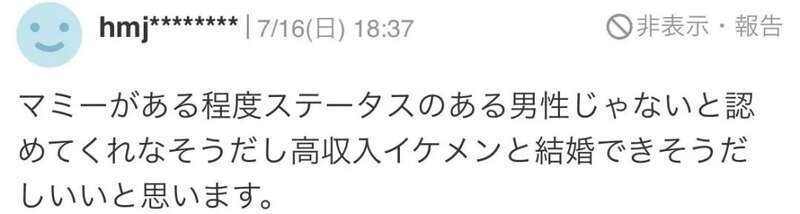 要不是有壹定地位的男性媽媽應該不會承認吧,不過應該可以和高收入的帥哥結婚,我覺得很好。