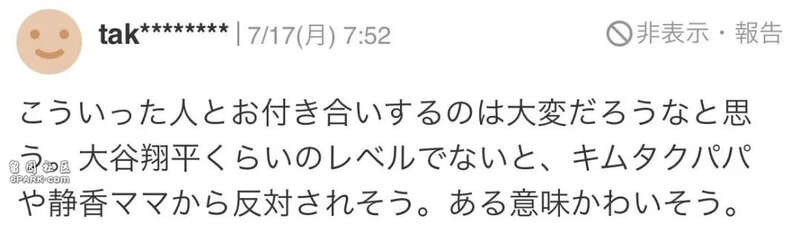 我覺得和心美交往應該很辛苦吧。如果不是大谷翔平這個級別的好像壹定會被木村爸爸和靜香媽媽反對。從某種意義上來說有點可憐。順便給小可愛們指個路,大谷翔平長這樣,