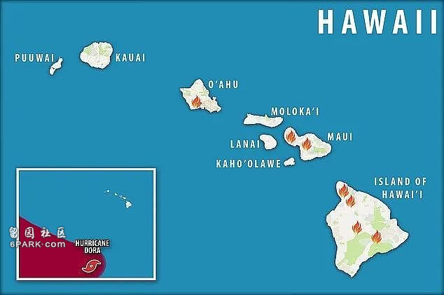 夏威夷大岛、毛伊岛和欧胡岛均发生火灾,中间的毛伊岛火势最严重,其中一场大火烧毁了维雷亚(Wailea)北部的部分地区,那里的海滩上有四季酒店和希尔顿等旅游酒店,另一场大火则摧毁了拉海纳镇(Lahaina)。