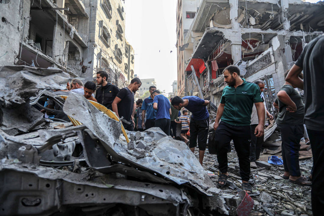 ▲10月31日,加沙人在以军空袭后的废墟里寻找幸存者 新华社发