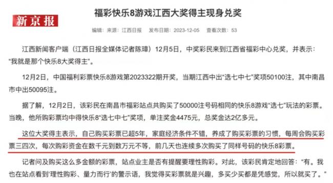 這位彩民出現在了彩票站裡兌獎,遇到記者時,他驕傲地對記者說:“我就是那個那個快樂8大獎得主!”