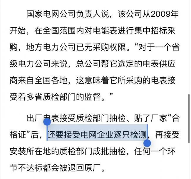 這個真實案例表明,在6年時間裡,供電局要麼是沒有發覺這些電表不合格,要麼是明知這些電表走得快但放任其存在。無論哪壹種情況都說明,供電局(電網)對電表准確性的保障並沒有他們聲稱的那麼可靠。