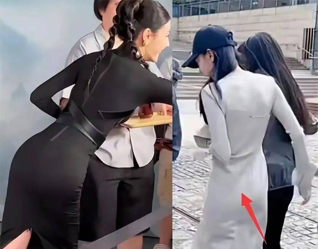 然而,在另一个视角下,从背后看过去,杨幂穿假屁股非常明显。