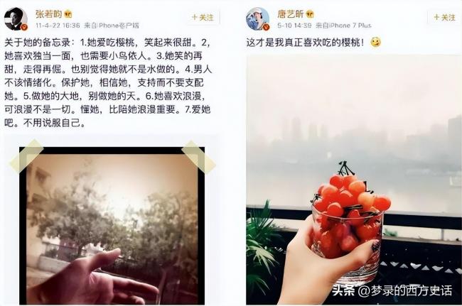 因為唐藝昕喜歡吃櫻桃,張若昀親手為她種下壹棵櫻桃樹。