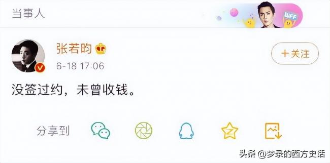 有壹影視公司曾和他父親的公司簽約,以2億的價格要求張若昀拍攝4部戲。