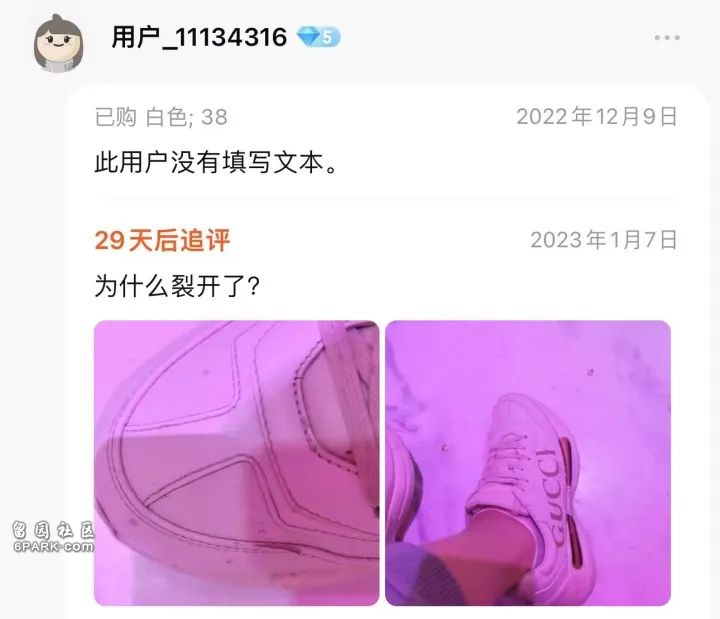 陈先生的经历并非个例。潮新闻记者在GUCCI古驰官方旗舰店看到,陈先生同款老爹鞋评论区,不少买家吐槽鞋子质量问题,并晒出开胶的图片。“拿回来就开胶,古驰的特色吧……让他们检查好了再发还不如第一次鞋的质量呢”“为什么裂开了”“今天才上脚的新鞋,发现有开胶,右脚大拇指跟步明显压脚,穿上不舒服”。