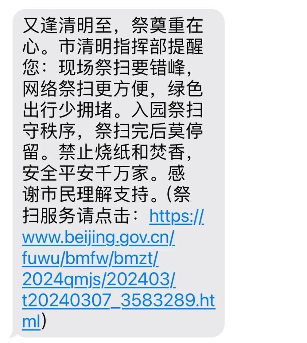 雖然現在環保和防火意識深入人心,政府也頻頻發送公共短信呼吁大家清明節文明祭掃、嚴禁焚燒。
