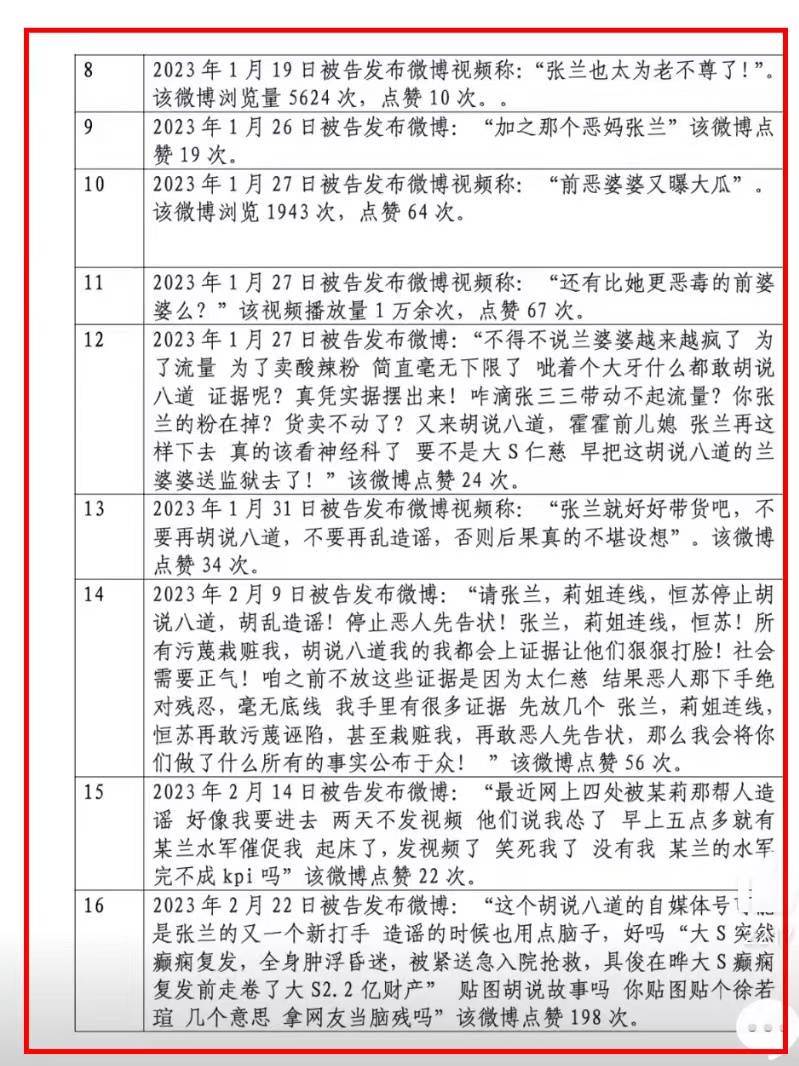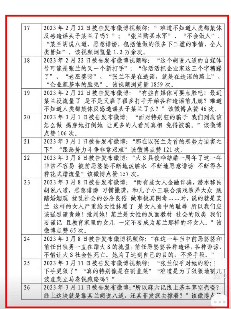 从一月份到三月份,一共发布关于张兰的言论高达27条,感觉这位网友好像是汪小菲前妻的粉丝,主要针对张兰进行人身攻击,已经构成侵犯张兰名誉权,所以律师都搜集到详细的言论,这样的提告,一告一个准,因为网友的恶评毫无任何的实锤证据,几乎都是诽谤、造谣等违法行为。